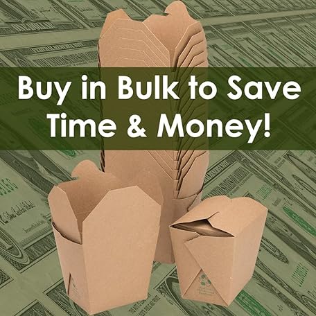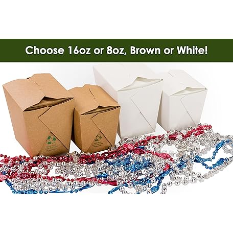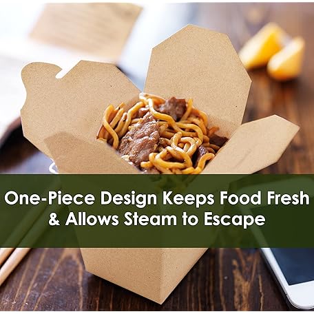 100% Recyclable 8oz Brown Chinese Take Out Boxes 50pk. Leakproof Greaseproof To Go Containers For Restaurants Event Parties Food Service. Best Value Bulk Pack Microwaveable and Stackable Meal Pails.
