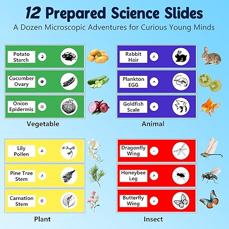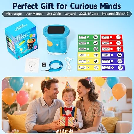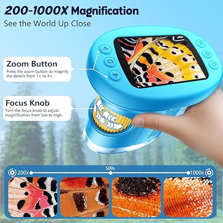 1000X Handheld Microscope for Kids, 4K 2.4" Screen Digital Kids Microscopes with 12 Slides, Portable Edu Toys Gifts for Age 3 4 5 6 7 8 9 10 11 12 Year Old Boys Girls Children Students(Blue)