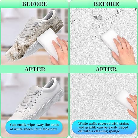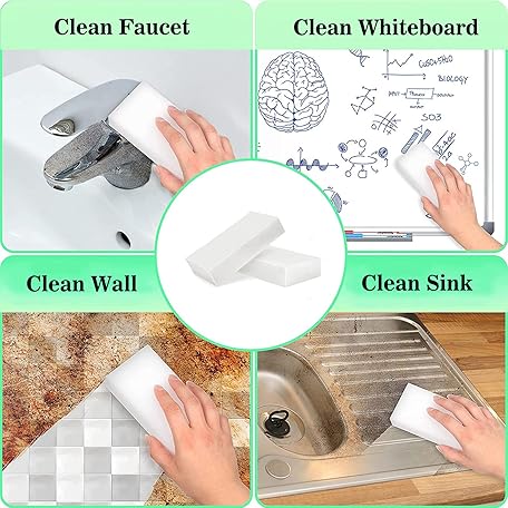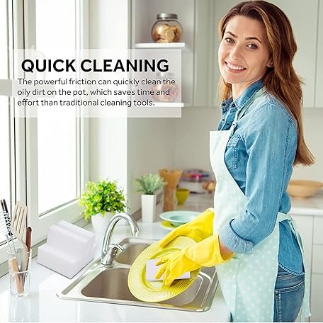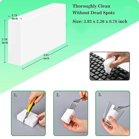 Thông tin sản phẩm 100Pack Magic Sponge Eraser, Melamine Sponge Foam, Non-Scratch Heavy Duty Kitchen Scrub Pads, Multi-Functional Household Cleaning Sponges for Dish, Bathroom, Bathtub, Sink, Cup, Wall Cleaner