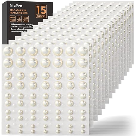 1050 PCS Pearl Stickers Self Adhesive,Nicpro 5 Size Stick On Makeup Pearl Gem Jewels Decor for Face, Body, Nail, Hair, Phone Art Craft Scrapbooking Embellishments, Size 4mm/5mm/6mm/8mm/10mm
