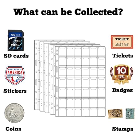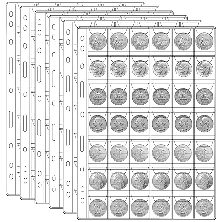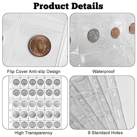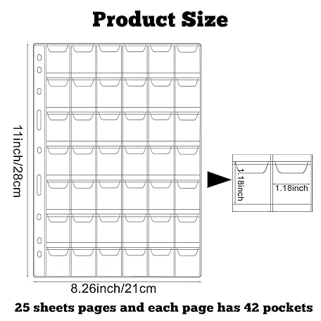 • 1050 Pockets Coin Sleeves, 25 Sheets Coin Holders for Collectors Plastic Coin Collection Supplies 9 Hole Binder Pages for Penny, Nickel, Dime, Quarter(42 Pockets)