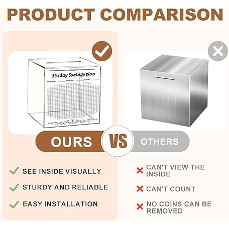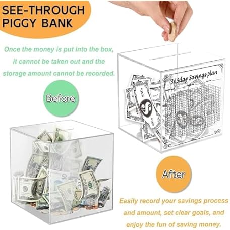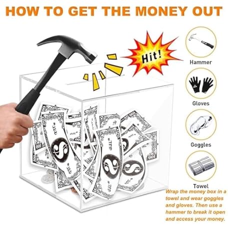 10K Smash Box for Money,10k Savings Challenge Smash Box, Clear Acrylic Cash Vault Money Saving Box, 365 Day Money Saving Challenge Box for Cash Coin (A)