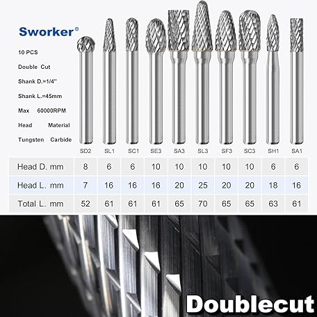 Thương hiệu Sworker là cái tên nổi tiếng được rất nhiều khách hàng trên thế giới chọn lựa. Với kiểu dáng đẹp mắt, sang trọng, sản phẩm 10Pcs Carbide Burr Set 1/4 Shank w/Clear Box Max Head Dia 10mm Die Grinder Bits Rotary Tools Attachment Kit Rasp Accessories Metal Wood Stone Steel Grinding Deburring Cutting Porting Carving là sự lựa chọn hoàn hảo nếu bạn đang tìm mua một món cho riêng mình.