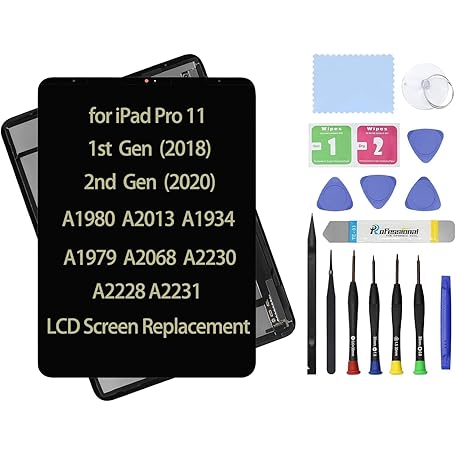 • 11" LCD Screen Replacement for iPad Pro 11 2nd Gen 2020 A2068 A2230 A2228 A2231 1st Gen 2018 A1980 A2013 A1934 A1979 LCD Display Assembly + Touch Digitizer + Repair Kit