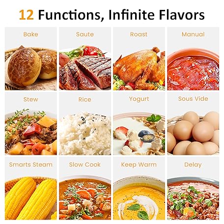 Thông tin sản phẩm 12 in 1 Programmable 8 Quart Slow Cooker, Multi-Cooker Food Warmer with Digital Timer, Temp Control, Removable Cast Aluminum Pot & Dishwasher-Safe Tempered Glass Lid, Stainless Steel
