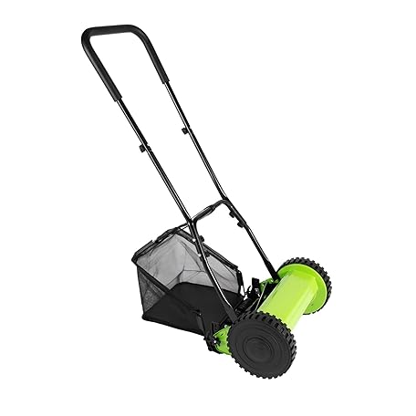 • 12 Inch 5 Blades Push Reel Lawn Mower Manual Lawn Mower Walk-Behind Lawn Mower with Adjustment Height and Removable Grass Catcher