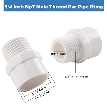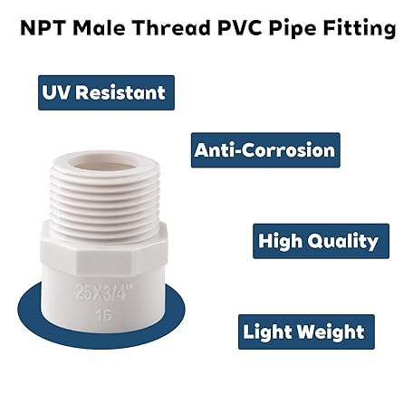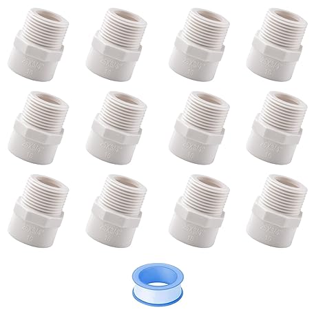 • 12-Pack 3/4 Inch Socket x NPT Male Thread PVC Pipe Fittings Adapter Connector for Plumbing, Irrigation, and DIY Projects