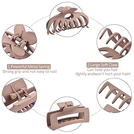 Thông tin sản phẩm 12 Pack Hair Claw Clips include 4.1 inch Large Clip and 2 inch Small Clip for Thick Thin Hair, Strong Hold jaw clip Big Non-slip Matte Hair Clips for Women,Neutral Colors…