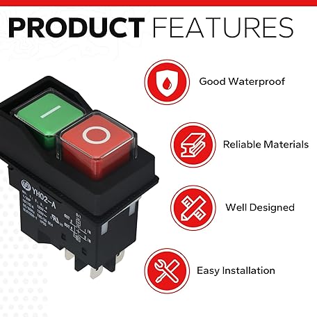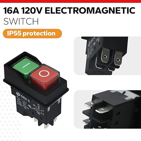 • 120V Electromagnetic Push Button Switch for Table Saws,Drill Press,Router Table, Band Saw,Bench Saws & Gardening Equipment-Compatible with Power Tools & Woodworking Machinery,1/2HP Push Button Switch