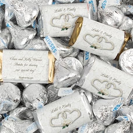 128 Pcs Personalized Wedding Candy Party Favors Wrapped Miniatures and Kisses (1.58 lbs) - Two Hearts