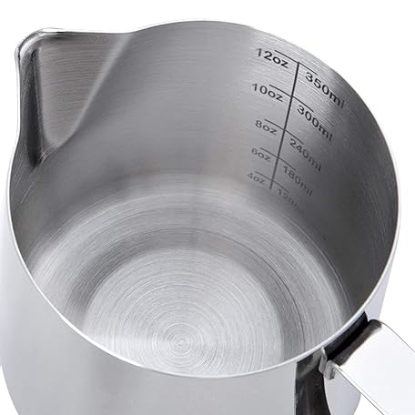 Sản phẩm 12oz Milk Frothing Pitcher, Stainless Steel Espresso Latte Cup Steaming Pitcher Creamer Cups, Milk Frother Cup Espresso Machine Accessories Barista Tools Jug for Coffee Cappuccino with Latte Art Pen đang được bán với giá ưu đãi là $8.7091 tại nước Mỹ.