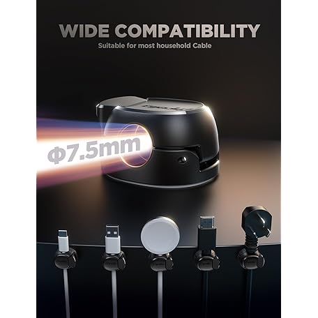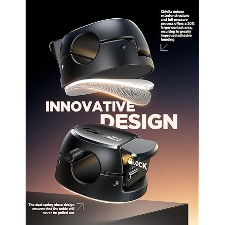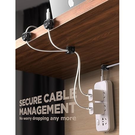 • 12Pack Cord Organizer [Dual Spring & Clasp, Max Secure] Cable Clips - Chfeila Cord Holder, Desk Cable Management, Adhesive Phone Charging Wire Holder for Nightstand/Car/Wall, Office Accessory - Black