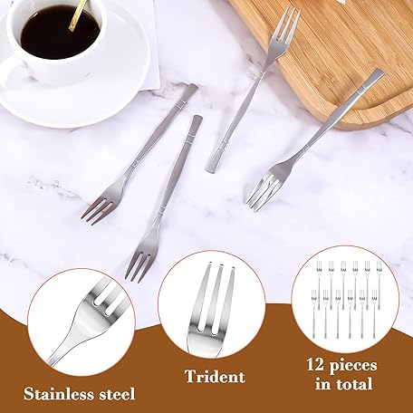 • 12PCS Appetizer Seafood Forks Crab Stainless Steel Forks Oyster Escargot Forks Set Portable Stainless Steel 3 Prong Cocktail Salad Fruit Dessert Forks for Tasting Crab Escargot Party Travel, 5 Inches