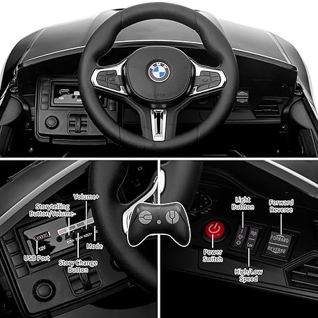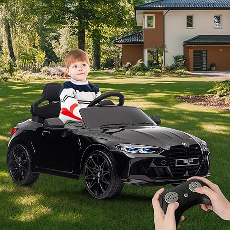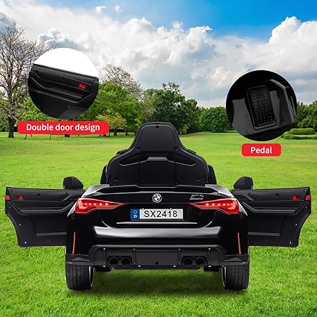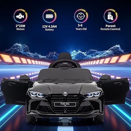 12V Electric Ride On Car w/RC,Licensed by BMW M4 Toddler Electric Vehicle for 37-83 Months,Power Wheels for Boys Girls, with Suspension System,3 Speeds, Bluetooth, MP3, Double Door, LED Light(Black)