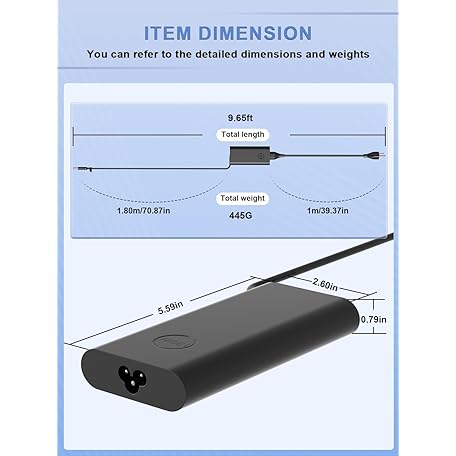 • 130W Charger 4.5mm Tip Compatible with Dell Inspiron16 14 Plus 17 16 15 14 13 Precision 5540 5530 5520 5510 M3800 XPS 15 9570 9560 9550 7590 Laptop Inspiron&Optiplex AIO Desktop