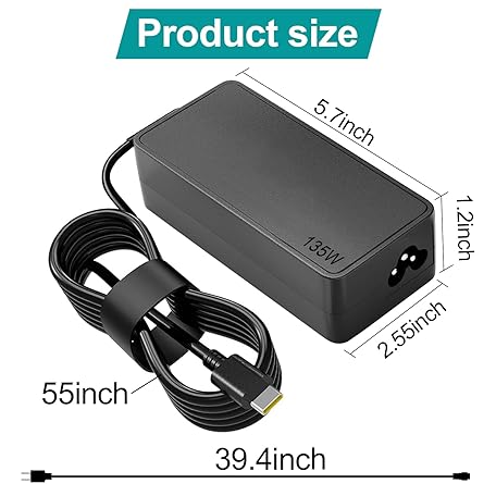 Thông tin sản phẩm 135W AC Charger Fit for Lenovo Thinkpad P1 Ideapad Gaming 3 Y700 700 S740 L340 Creator 5 7 ideapad 5 Pro Yoga Slim 7 Pro C940 Yoga 9-15IMH5 Legion Y520 ThinkBook 15P Laptop, 135W AC Adapter Slim Tip