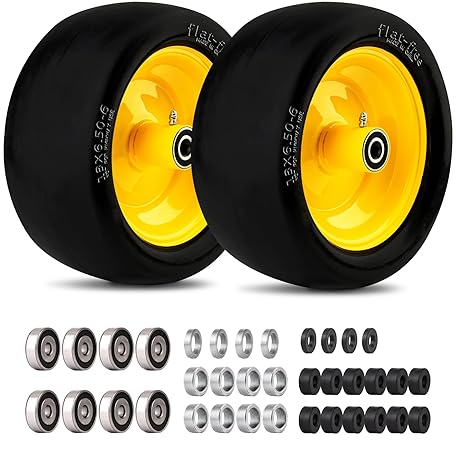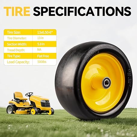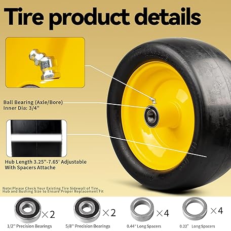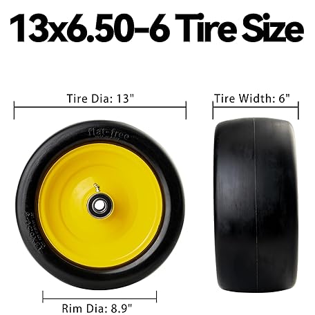 Thông tin sản phẩm 13x6.50-6 Lawn Mower Tires Flat Free,Solid Smooth Lawn Mower Replacement Tires with 3/4" & 5/8" Bearing, 3.25"-7.65" Center Hub,13x6.5-6 Riding Lawn Mower Tire,Zero Turn Mower Front Tires
