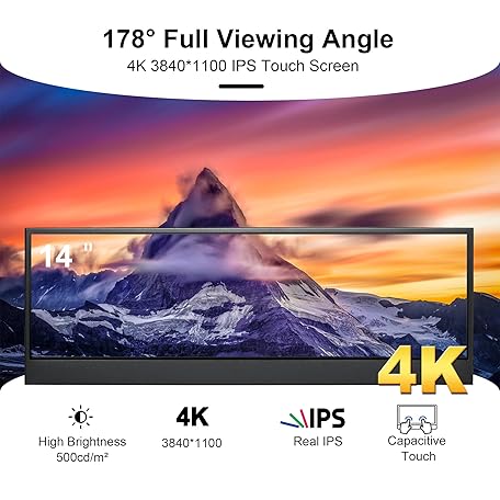 Sản phẩm 14'' 4K UHD IPS 3840x1100 Stretched Bar Touch Screen Display Monitor for Laptop Computer PC Speed Temperature Windows Aida64 CPU GPU HDMI Secondary Monitor for Music Media Timeline Editing đang được bán với giá ưu đãi là $272.4891 tại nước Mỹ.