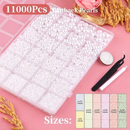 Thông tin sản phẩm 14000Pcs Flatback Pearls for Crafting (White), Assorted Size 2/3/4/5/6/8/10mm Half Pearl Bead Gems with 3Pcs 10ml B7000 Jewelry Glue, Bedazzling Kit for Crafts Shoes Graduation Cap Nail Art