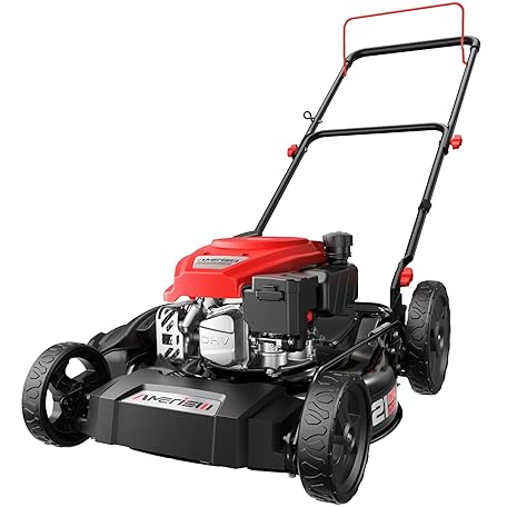 144cc Gas Lawn Mower, 21 inch 2-in-1 Mulching & Side Discharge, 6-Position Height Adjustment, Foldable Handles for Lawn, Yard, and Garden Maintenance