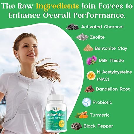 15-in-1 Detox Binder, Activated Charcoal, Zeolite & Bentonite Clay, Chlorella, 1500 MG Detox Supplement Maximum Absorbent, Liver Gut Digestive Detox Cleanse, 180 Vegan Capsules