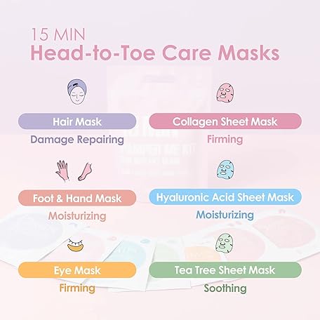 Thông tin sản phẩm 15 Min Pamper Me Kit by Naisture – Korean Spa and Skincare Kit for Women with Hair Mask, Hand and Foot Masks, Eye Mask, and Face Masks