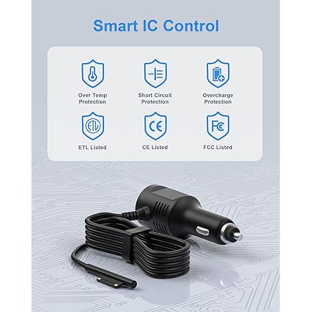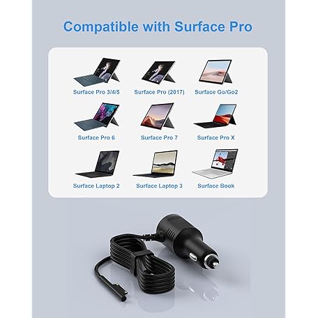 Thông tin sản phẩm 15V2.58A Surface Pro Car Charger with 5V2A USB Port, Surface Car Adapter for Microsoft Surface Pro 3/Pro 4/Pro 5/Pro 6/ Pro 7/Pro X Tablet, Surface Book, Surface Go, Surface Laptop,Cell Phone 【4.9FT】