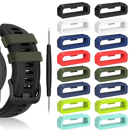 16-Pack 20mm Fastener Rings, Band Keeper, Silicone Replacement Watch Band, Compatible with Garmin Vivoactive 6 5 3/Forerunner 645 245 45 55 165/Venu Sq Sq 2/Fenix 7S 6S 5S (Includes removal tool)