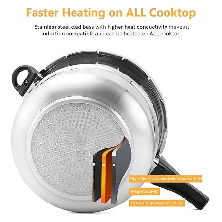 Thông tin sản phẩm 16 Quart Pressure Cooker, 10 Psi Induction Compatible Pressure Canner w/Stainless Steel Honeycomb Base, Heavy Gauge Aluminum, Quality Steamer Rack Included