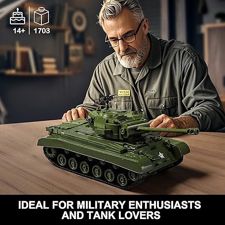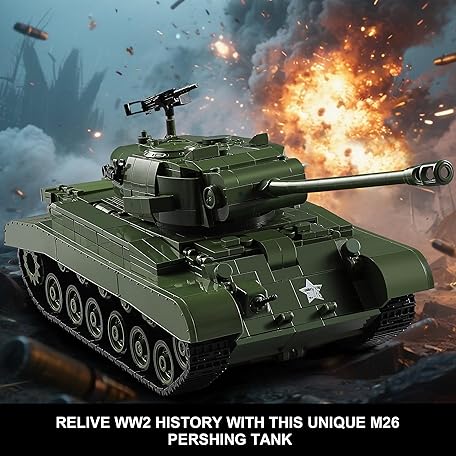 Thông tin sản phẩm 1703-Piece WW2 Army Tank Building Blocks Sets for Adults Compatible with Lego, Create a M26 Pershing Tank Model kit to Build and Display, Collectible Gift Ideal for Military Fans