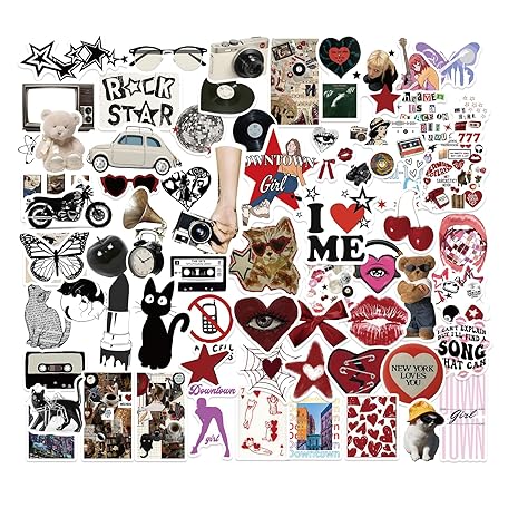• 170PCS Y2K Grunge Stickers, Aesthetic Downtown Girls Pack Cool Trendy 2000s for Water Bottle Funny Waterproof Stickers for Teens Adults Vinyl for Laptop Skateboard