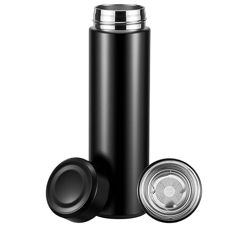 17oz Stainless Steel Water Bottles, Slim Water Bottle, Thermo Water Bottle, Insulated Water Bottle Keep Hot for 12 Hrs, Cold for 24 Hrs for Coffee, Drinks(Black)