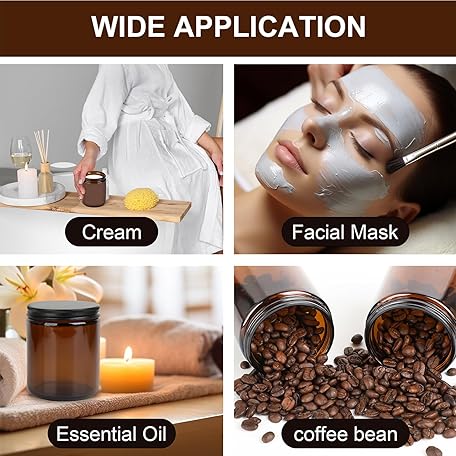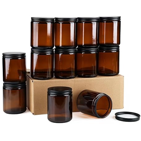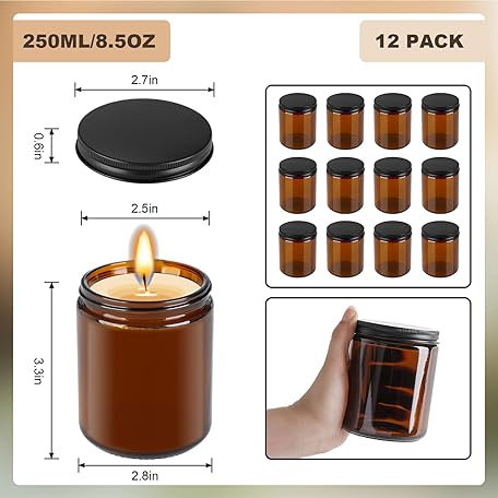 18 Pack Amber Glass Jars, 8 Oz Thick Amber Round Glass Jars, with Black Metal Lids, for Spice, Liquid, Sample, Leakproof and Dishwasher Safe
