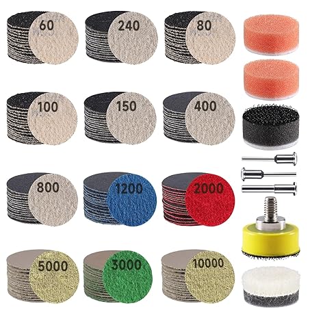 188 PCS 1 Inch Sanding Discs, GOH DODD Hook and Loop 60 to 10000 Grit Wet Dry Sandpaper Micro Sand Paper with 1/8" 1/4" Shank, Backing Pad, Polishing Pads, Foam Pads for Auto Metal Glass Resin Wood