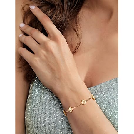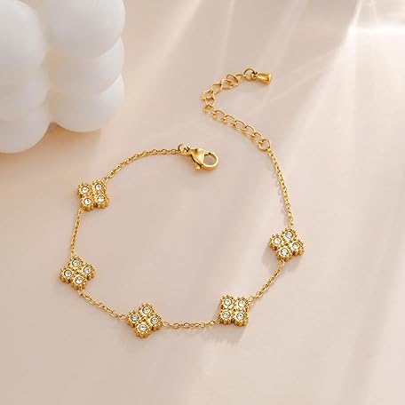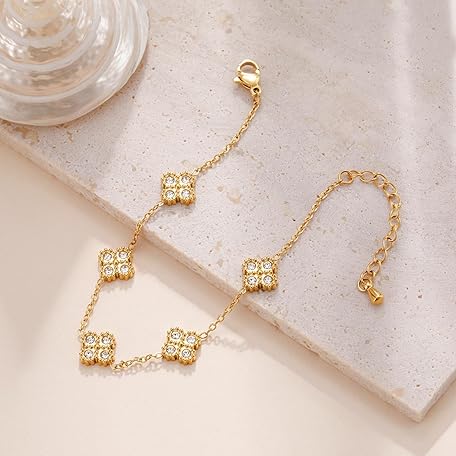 Sản phẩm 18K Gold Plated Clover Bracelet for Women Four Leaf Cubic Zirconia Stainless Steel Dainty Flower Link Bracelets đang được bán với giá ưu đãi là $10.8891 tại nước Mỹ.