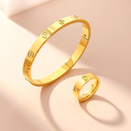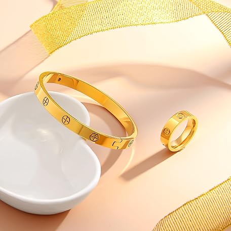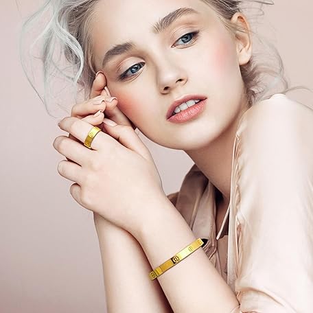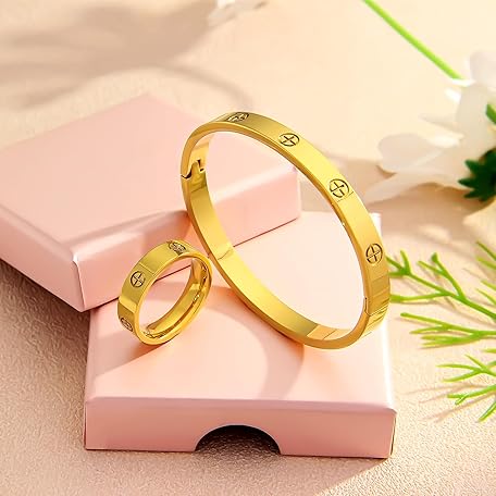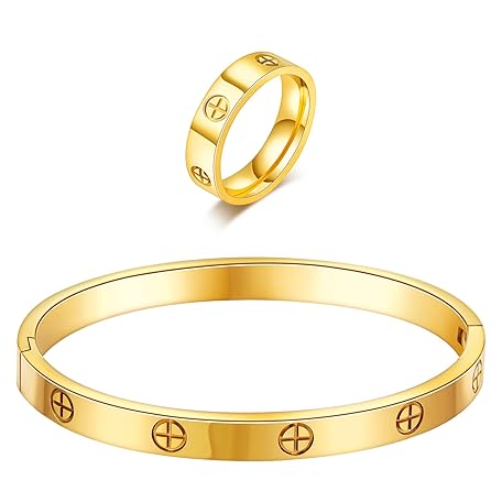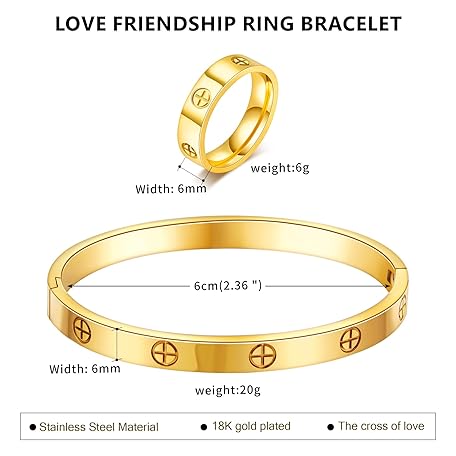 Sản phẩm 18K Gold Plated Friendship Love Bracelet with Ring Jewelry Set for Women Stainless Steel Cuff Oval Bangle Simple Hinged Cubic Zirconia Stones Bangle Cuff Best Gifts for Mother's Day Valentine's Day Wedding Couples and Birthdays đang được bán với giá ưu đãi là $16.3391 tại nước Mỹ.