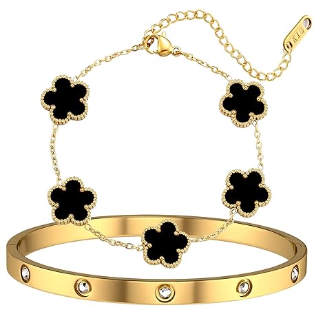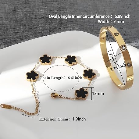 Sản phẩm 18K Gold Plated Lucky Clover Bracelet and Friendship Love Bangle Bracelets Set for Women Girlfriend Gold Cubic Zirconia Bracelet Set, Christmas Valentines Wedding Birthday Gifts đang được bán với giá ưu đãi là $11.9791 tại nước Mỹ.