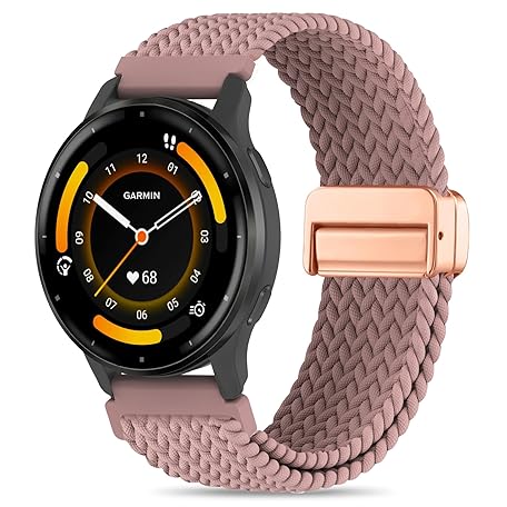 18mm Magnetic Braided Nylon Band Compatible with Garmin Venu 3S/Venu 2S/Vivoactive 4S/Vivomove 3S/Forerunner 255S/Forerunner 265S, Quick Release Stretchy Strap for Women Men