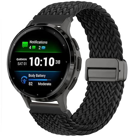18mm Magnetic Braided Nylon Watch Band Compatible with Garmin Venu 3s/Venu 4 41mm/Venu 2s/ Vivoactive 4s/ Vivomove 3s /Forerunner 255S /265S, Elastic Soft Sport Stretchy Strap for Women Men