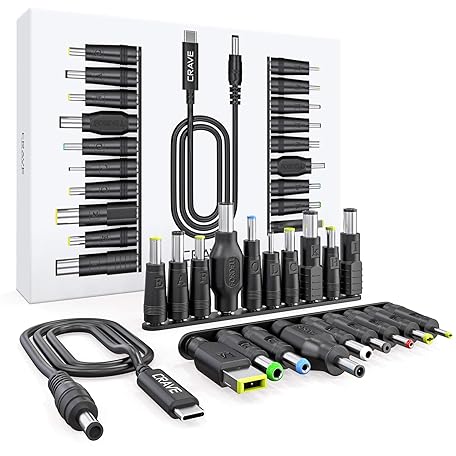 Thông tin sản phẩm 19pcs Laptop Adapter Kit for Crave PowerPack [USB-C to DC Cable + 19 adapters] for Acer, Asus, Lenovo, Fujitsu, Toshiba, DELL, HP, Compaq, Samsung, BenQ, Sony, IBM