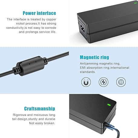 19V DC Power Supply 19V 3.42A Power Adapter for 65W 45W Laptop Monitor Speaker Compatible with Asus/Acer/Gateway/Toshiba Laptop for LG/Acer/Asus Monitor Power Cord with 10tips