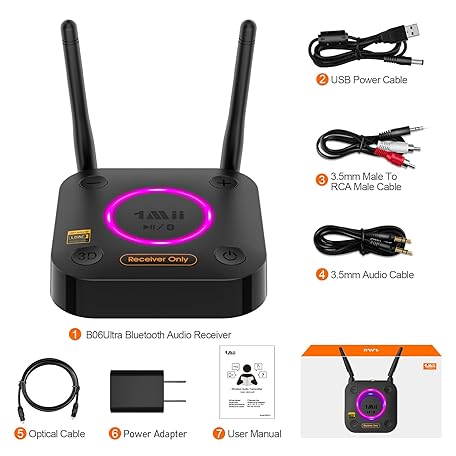 Thông tin sản phẩm 1Mii B06Ultra Bluetooth 5.2 Receiver with LDAC for Hi-Res Wireless Audio, HiFi Bluetooth Audio Adapter w/Audiophile DAC, 3D Surround aptX HD Low Latency, Optical AUX 3.5mm Coaxial for Home Stereo