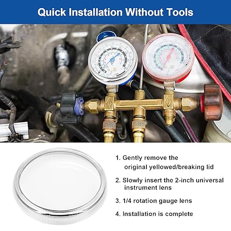 Thông tin sản phẩm 2-1/2" Pressure Gauge Replacement Cover,1/4 Turn Twist Lock Regulator Replacement Lens, Clarity Replacement Regulator Gauge Cover Compatible with Yellow Jacket Gauge Cover, Most 2-1/2" Gauges 4 Lens