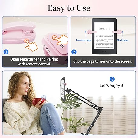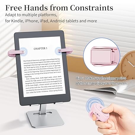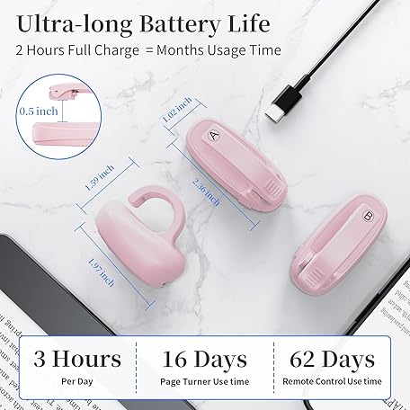 Thông tin sản phẩm [2 Clips] Finger Ring Kindle Page Turner Remote Control for Paperwhite: Rechargeable Wireless Clicker for Reading on Bed for iPhone Android iPad, Camera Shutter & Video Record Accessories (Pink)