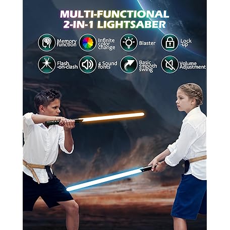 Thông tin sản phẩm 2 in 1 Dueling Light Saber, Double Light Sabers for Adults Christmas Birthday Gifts, Metal Hilt Force Fx Rechargeable 2Packs Fx Saber with 12 Colors Light Sabers for Kids Toys Halloween Cosplay Party
