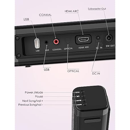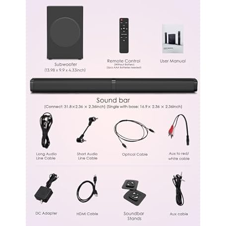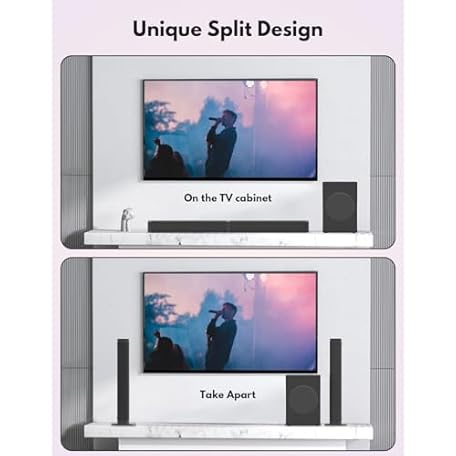 Thông tin sản phẩm 2 in 1 Separable Sound Bar for Smart TV with Subwoofer, Bluetooth 5.0 Surround Sound System for Home Theater, ARC/Optical/Aux/USB TV Speaker, Treble/Bass Adjust, 10 EQ Modes, Remote Included