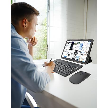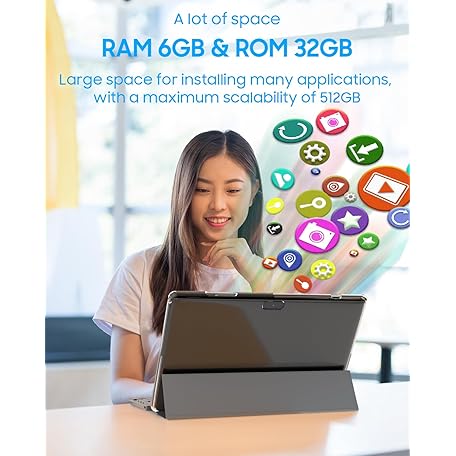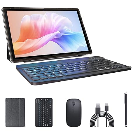 Thông tin sản phẩm 2 in 1 Tablet with Keyboard Case Mouse Stylus, 10 inch Tablet Android 14 Tablets PC, 6GB RAM+32GB ROM Support 1TB Expandable, 6000mAh Battery IPS 10.1" Tab 2MP+8MP Dual Camera WiFi-6 Bluetooth Tableta