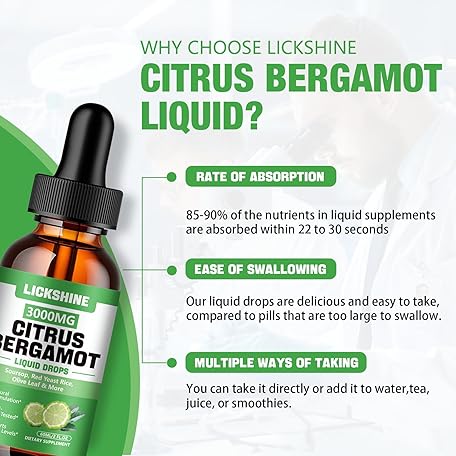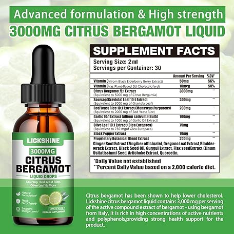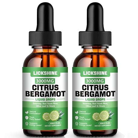 2 Pack 3000mg Citrus Bergamot Liquid Drops - High Absorption - Cholesterol Lowering Supplement for Immune Support Anti-Aging, Hight Cholesterol - Soursop Bitters Liquid, 4 Fl Oz