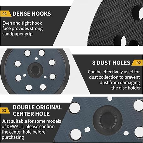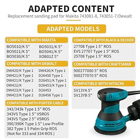 Thông tin sản phẩm 2 Pack 5" 8 Hole Hook & Loop Replacement Sander Pads Compatible with Makita Orbital Sander BO5010 BO5030K BO5031K BO5041K, Replacement Parts #743081-8/743051-7 (3 Screw Holes Sander Pads