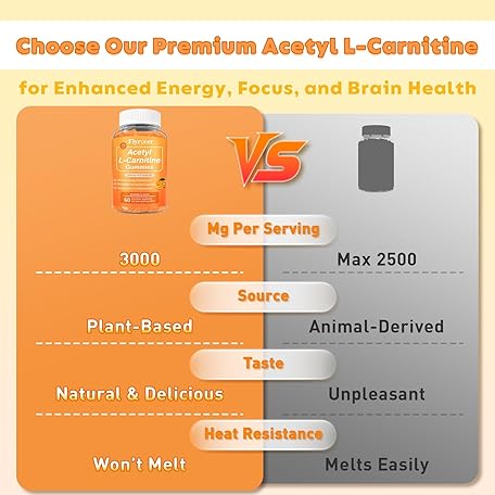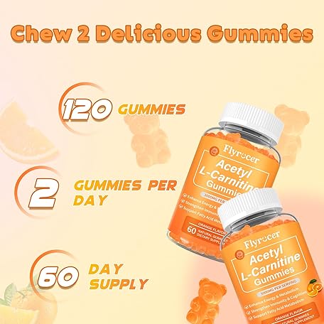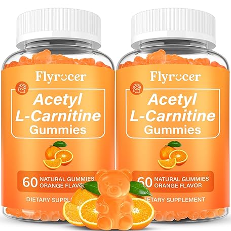 2 Pack Acetyl L-Carnitine Gummies for Energy & Brain Function Support – Vegan, Non-GMO, Orange Flavor, 120 Count (60-Day Supply)